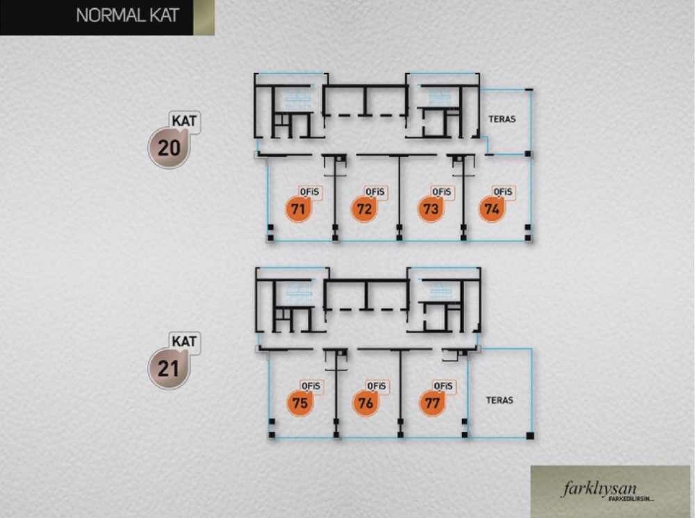 Emeğiniz, siz değerli yatırımcılar için yüksek bir değere, çalışanlarınızın artan motivasyonuyla, daha verimli bir üretime dönüşecektir. Açık ofis düzeni, zevkinizce düzenleyip tasarlayacağınız geniş alanları, yeşile doygun şehir manzarası ile, işinize etkisi tartışılmayacaktır.